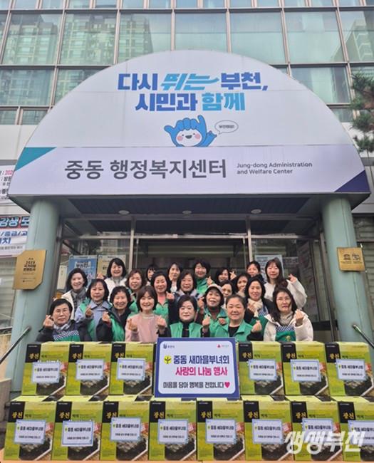부천시 원미구 중동(동장 김미영)은 지난 11일 중동 새마을부녀회(회장 이영후)가 연말을 맞아 지역 내 저소득 어르신들의 건강한 식생활을 돕기 위해 김 50박스를 후원했다고 밝혔다. 이번 후원품은 관내 독거·취약계층 어르신들에게 전달되어 따뜻한 연말 분위기 조성에 힘이 될 전망이다.