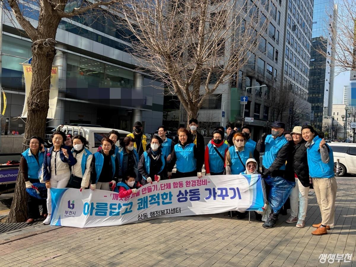 부천시 원미구 상동(동장 유기순)은 지난 25일 송내 영화의거리 일대와 송내초등학교 통학로 주변에서 환경정비 및 안전캠페인을 실시했다.