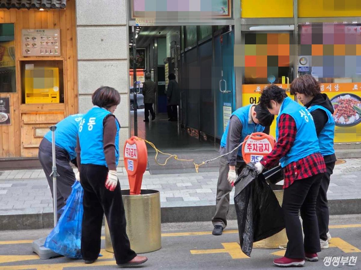 ▲ 송내 영화의거리 일대에서 방치된 생활쓰레기 수거 등 환경정비 활동을 실시하고 있다.