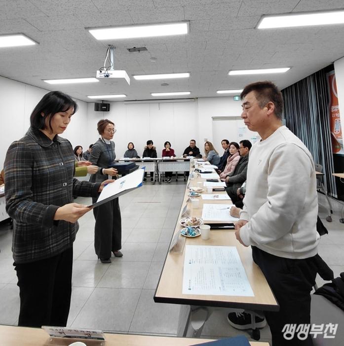 ▲ 유기순 상동장이 위원들에게 위촉장을 수여하고 있다.