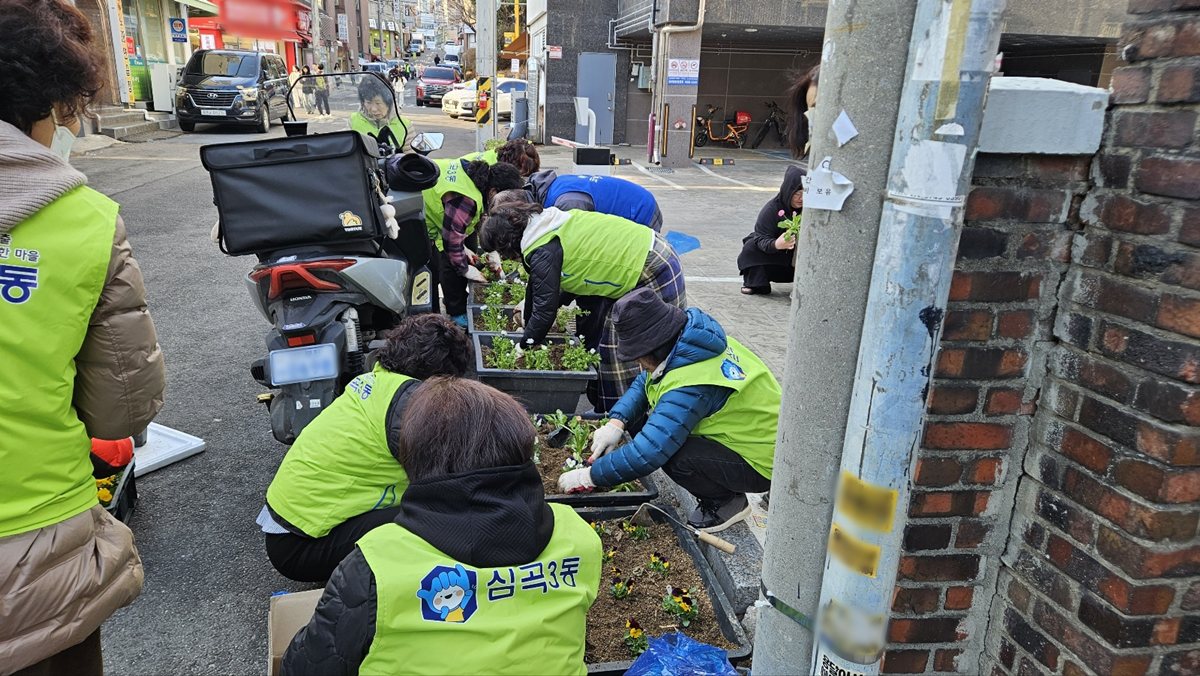부천시 원미구 심곡3동(동장 이은주)은 지난 4일 봄을 맞이하여 관내 자생단체원들과 함께 심곡3동 일대에서 꽃묘 식재 및 환경정비 활동을 진행했다.