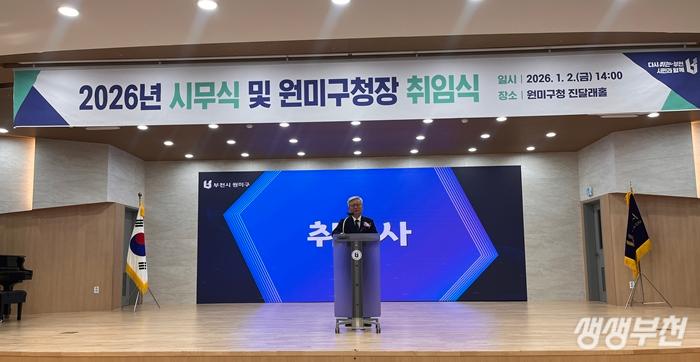 제20대 원미구청장으로 부임한 김원경 구청장이 2일 오후 2시에 구청 진달래홀에서 취임식을 하고 본격적인 업무를 시작했다.