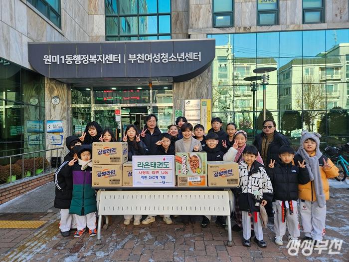 부천시 원미구 원미1동(동장 노유영)은 지난 13일 라온태권도(관장 배명진)가 새해를 맞아 라면 240개를 기탁했다고 밝혔다.