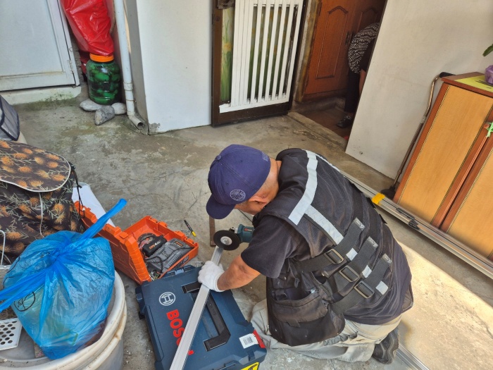▲ 마을지니어스 사업과 연계 주거취약가구 방충망 설치 작업