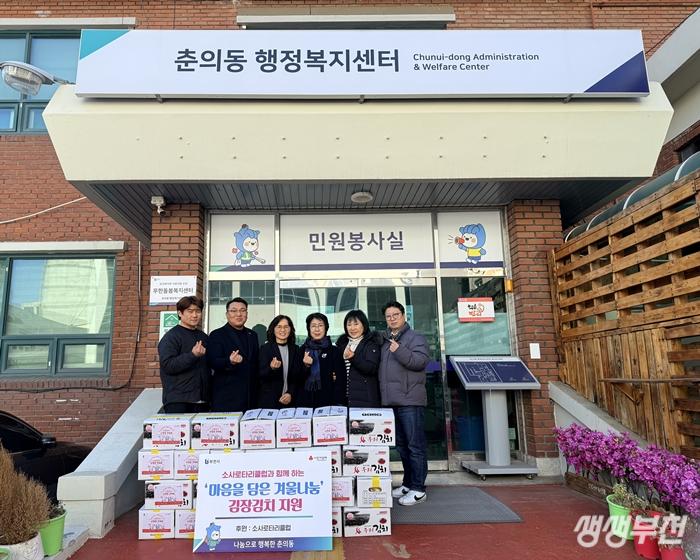 부천시 원미구 춘의동(동장 이순임)은 지난 7일 소사로타리클럽 후원으로 ‘마음을 담은 겨울나눔 김장김치 전달식’을 춘의동 행정복지센터에서 진행했다고 전했다.