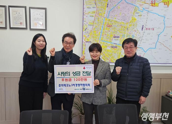 ▲ 지난 17일 춘의테크노3차경영자협의회(회장 김재각)에서 사랑의 성금 120만 원을 기탁했다.
