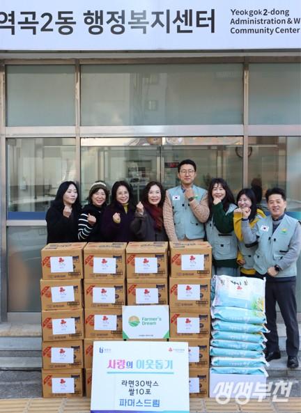 파머스드림(이사장 김정택)은 지난 31일 연말연시를 맞아 관내 취약계층을 돕기 위해 역곡2동 행정복지센터에 식료품을 기탁했다.