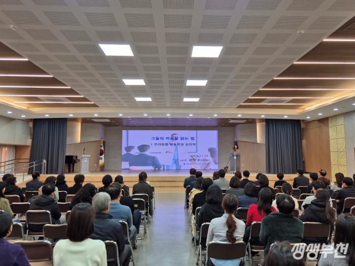 마지막으로 김현주 부천대학교 동물학과 학과장의 ‘함께 살아가는 반려동물, 더 깊이 알아보기’라는 주제의 강연을 통해 반려동물을 키우는 가구가 증가하는 현대에서 반려동물에 대한 이해 방법과 관련된 법에 대해 교육하여 공무원으로서의 책임과 의무를 배우는 유익하고 뜻깊은 시간을 가졌다.