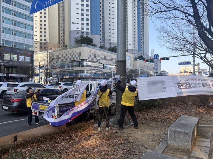 ▲ 부천시 원미구(구청장 김원경)는 설 연휴 불법 현수막 일제 점검 및 정비를 실시했다.