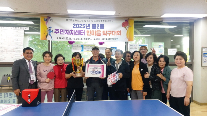 부천시 원미구 중2동(동장 정미숙)은 지난 29일 주민자치회(회장 김석만)에서 탁구교실 수강생 및 주민자치위원 50여명이 참여한 가운데 2025년 중2동 주민자치센터 한마음 탁구대회를 열었다고 밝혔다.