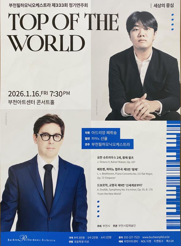 올해 처음으로 열린 제333회 정기연주회 ‘Top of the World’는 프랑스 라무뢰 오케스트라 음악감독이자 부천필하모닉오케스트라 제4대 상임지휘자인 아드리앙 페뤼숑(Adrien Perruchon)의 지휘로 진행됐다.