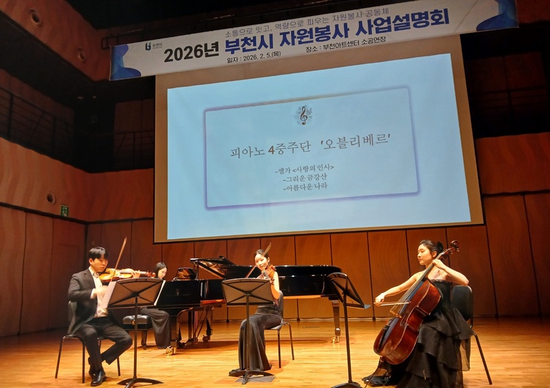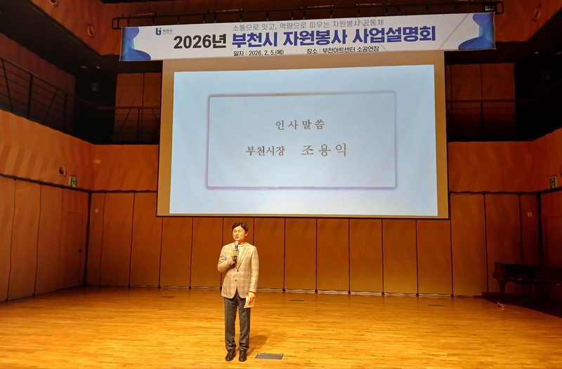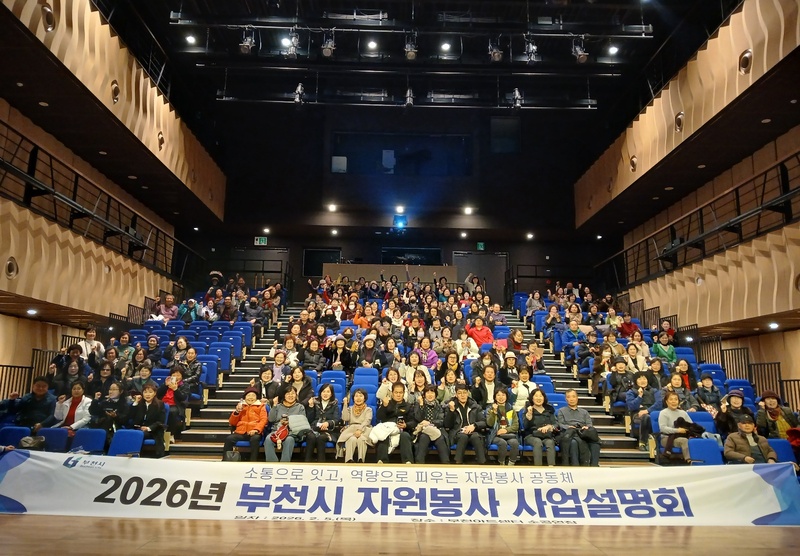 부천시는 지난 5일(목) 부천아트센터 소공연장에서 자원봉사자 250여 명이 참석한 가운데 ‘2026년 자원봉사 사업설명회’를 개최했다. 이번 설명회는 2026년 자원봉사 정책 방향과 주요 사업을 공유하고, 현장의 의견을 수렴해 시민 중심의 자원봉사 문화를 더 확산하기 위해 마련됐다.
