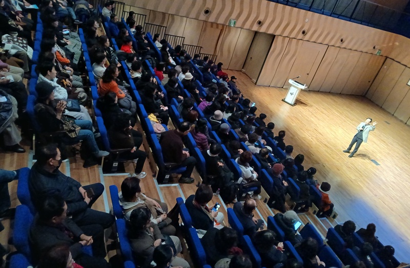 지역사회를 위한 따뜻한 나눔의 손길이 모이는 자원봉사 설명회. 추운 날씨에도 불구하고 많은 시민들이 몰렸다. 행사장 로비에는 참가자 서명을 위한 대기 줄이 길게 이어지며, 자원봉사에 대한 높은 관심을 실감케 했다.