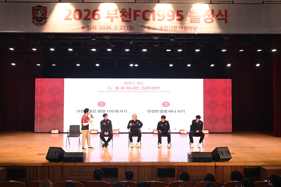 부천FC1995가 22일 부천시청에서 2026시즌 출정식을 열고 창단 첫 K리그1 시즌을 앞둔 각오를 시민들과 함께 다졌다. 부천시는 오는 3월 1일 K리그1 개막전을 치르는 구단이 1부리그에서 당당히 경쟁할 수 있도록 지원하는 동시에, 경기 관람과 문화 체험, 소비가 이어지는 ‘스포츠 기반 지역경제 활성화’를 본격화할 계획이다.